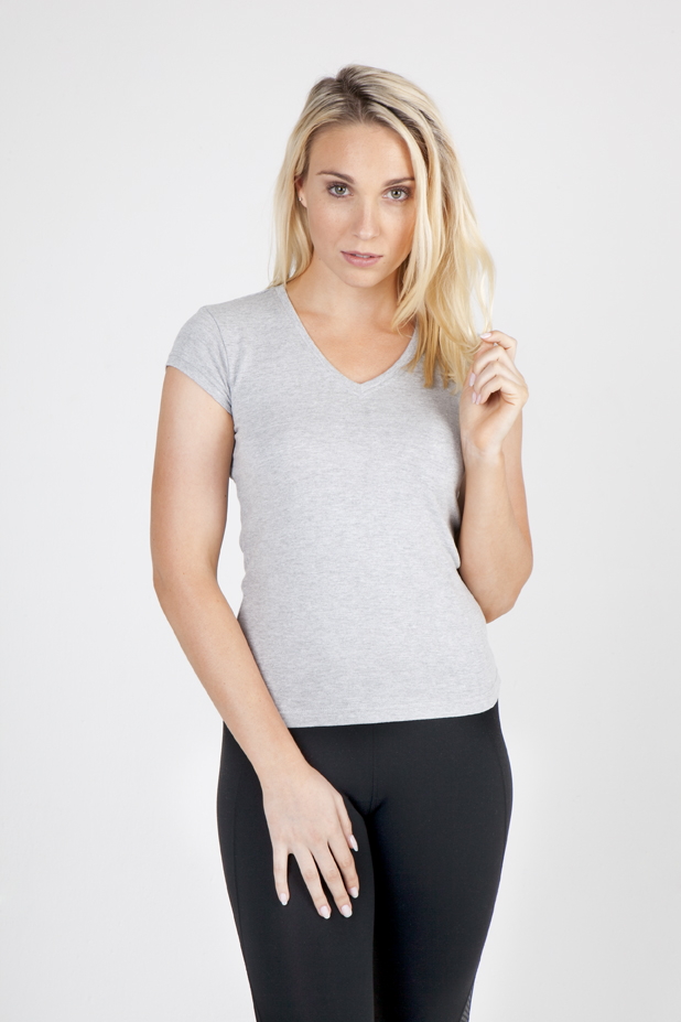 100% combed cotton V-neck Cap sleeves Slim Fit