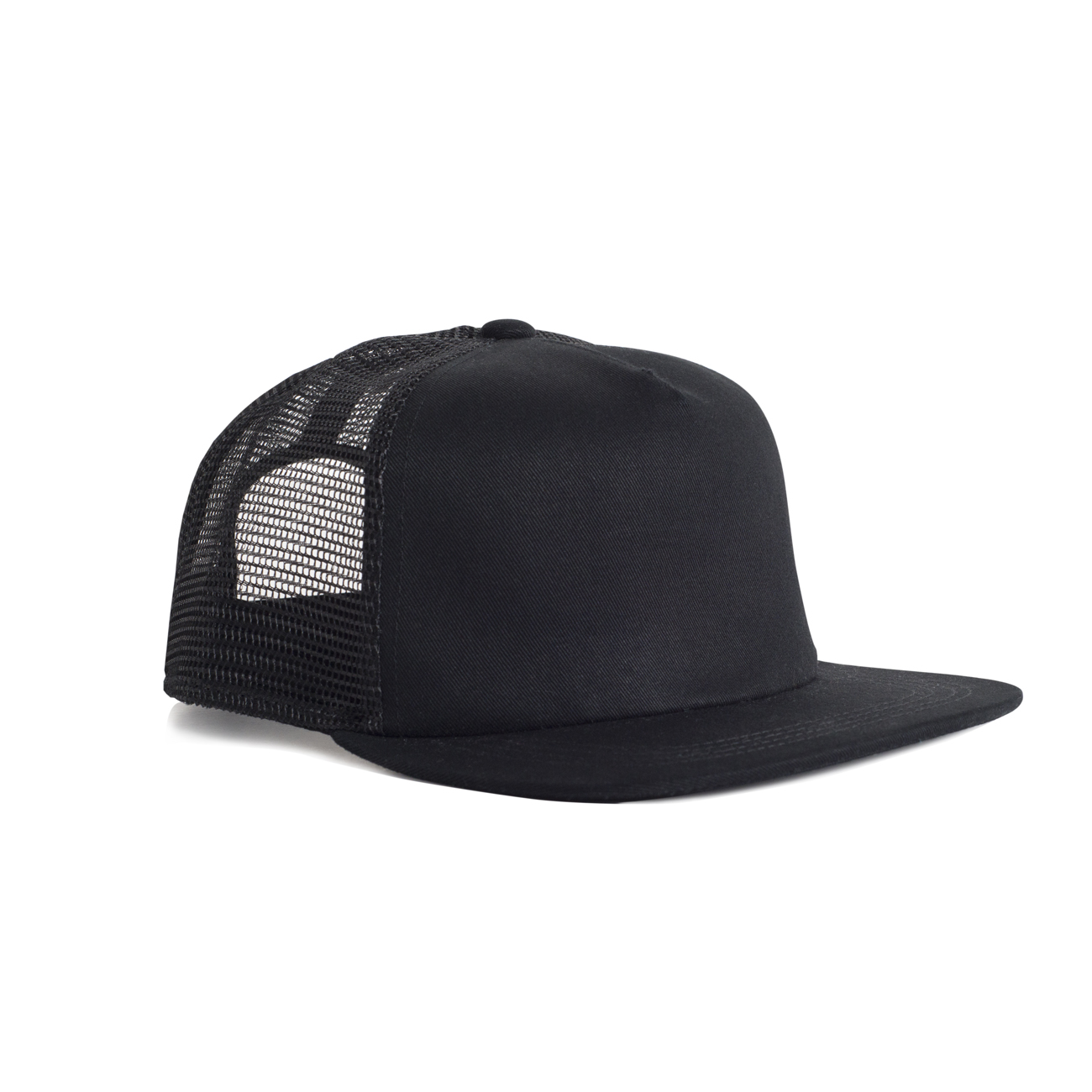 100% cotton front & peak, 100% recycled polyester mesh back