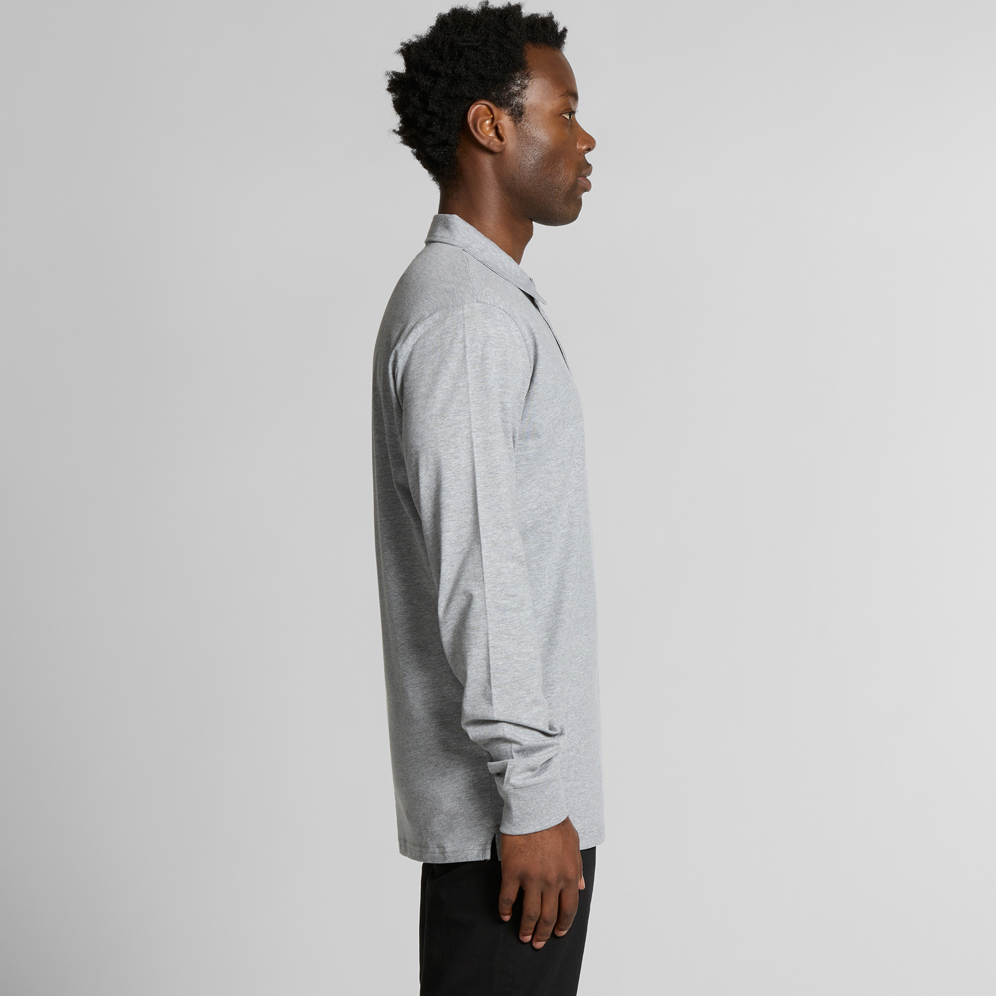 Long sleeve collared polo shirt, 3 button placket, tonal buttons, split detail at sides