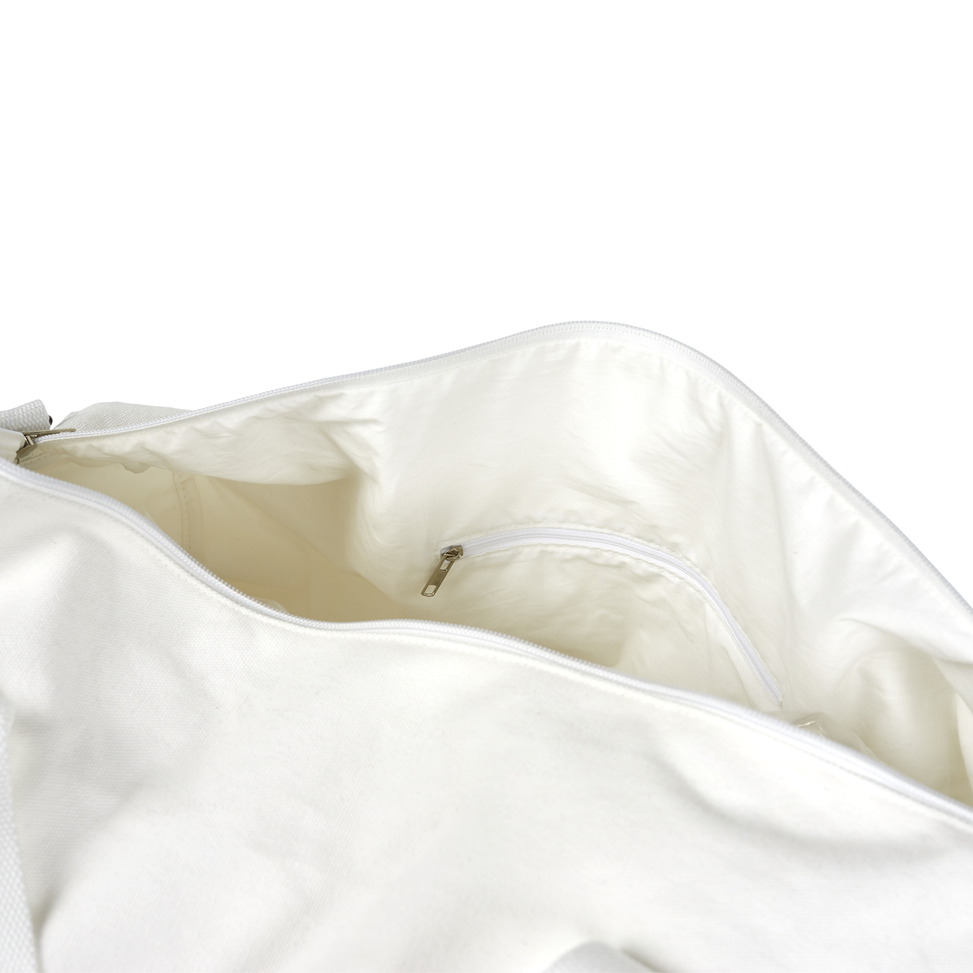 One large main compartment, YKK tonal nylon zip, reinforced adjustable shoulder strap and handles