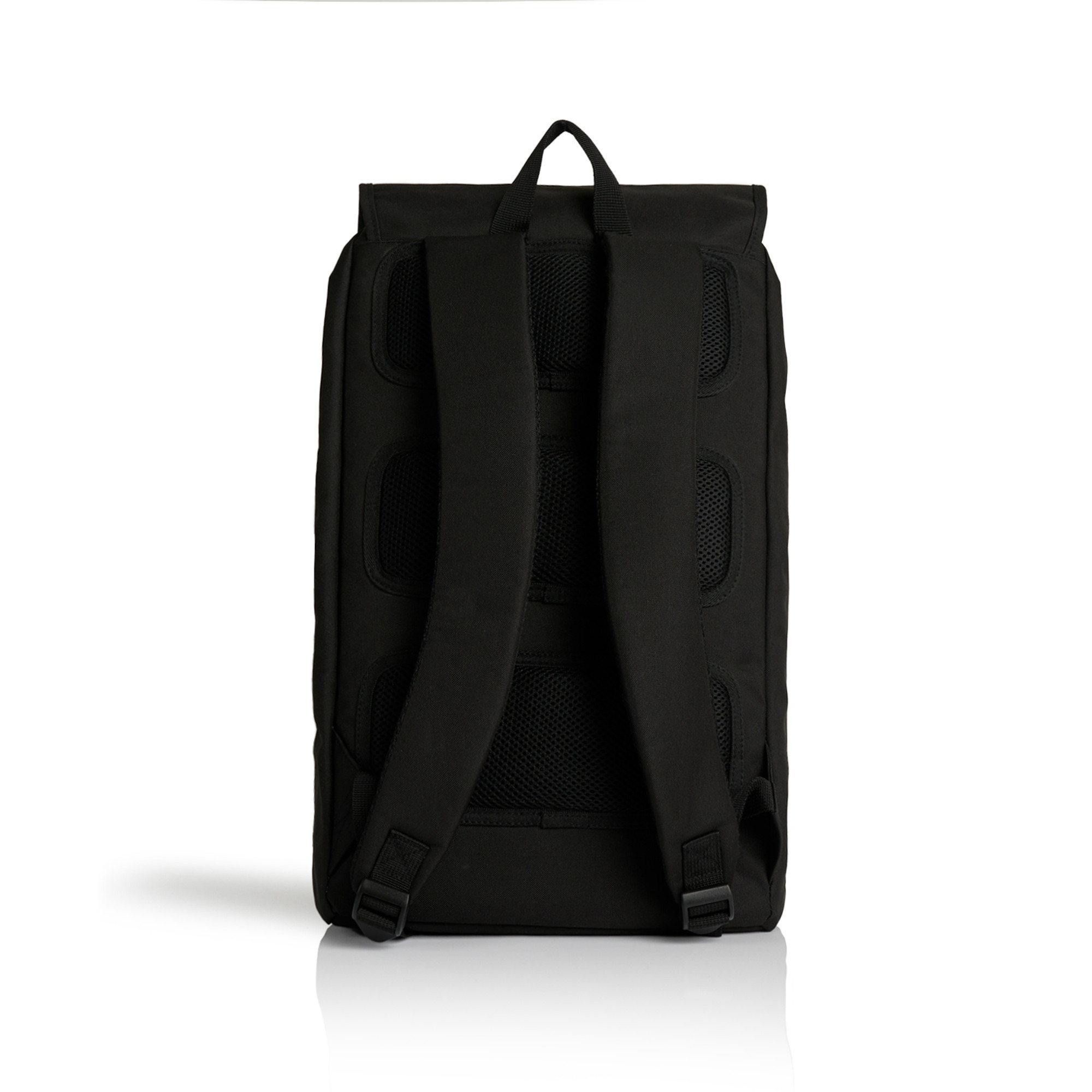 Large main compartment, drawcord with single adjuster at top, flap to close with double buckle, internal metal mesh window, with key chain attachment, internal laptop sleeve, external ykk zip pocket